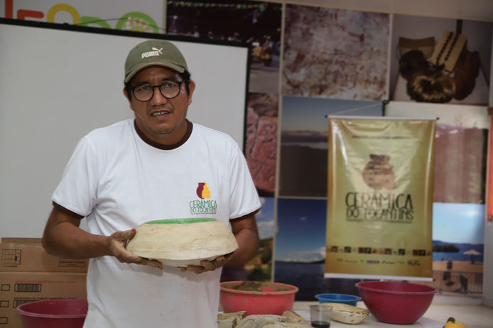 Kleber Almeida é artesão ceramista, natural de Icoaraci, em Belém do Pará, onde iniciou sua trajetória ainda jovem, aprendendo com seu tio todo o processo da cerâmica: desde a preparação do barro até o torneamento, os acabamentos e a pintura. Em 1994, mudou-se para o Tocantins, trazendo consigo o conhecimento tradicional e o olhar atento ao design ancestral.